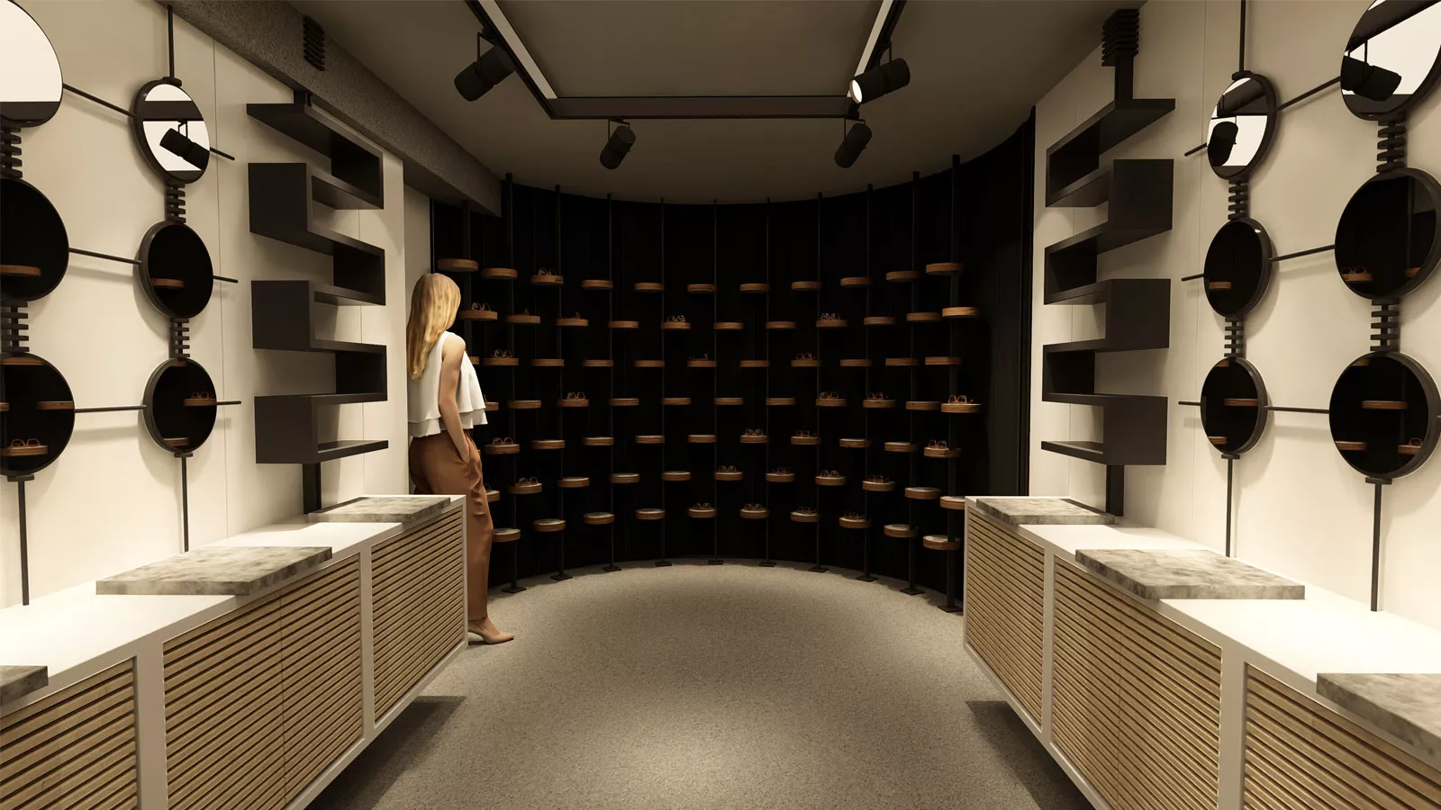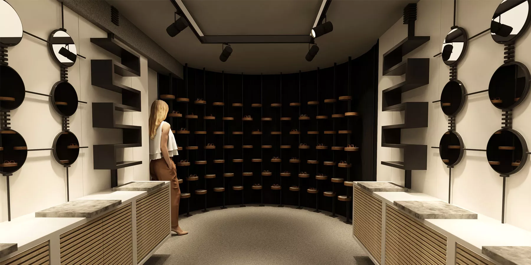 Tasarım sürecinde aydınlatma ve vitrin düzeni büyük önem taşıdı. Forlin Design ekibi, takı ürünlerinin estetik değerini vurgulayan ve ziyaretçilere özel bir alışveriş deneyimi sunan bir showroom atmosferi oluşturdu.