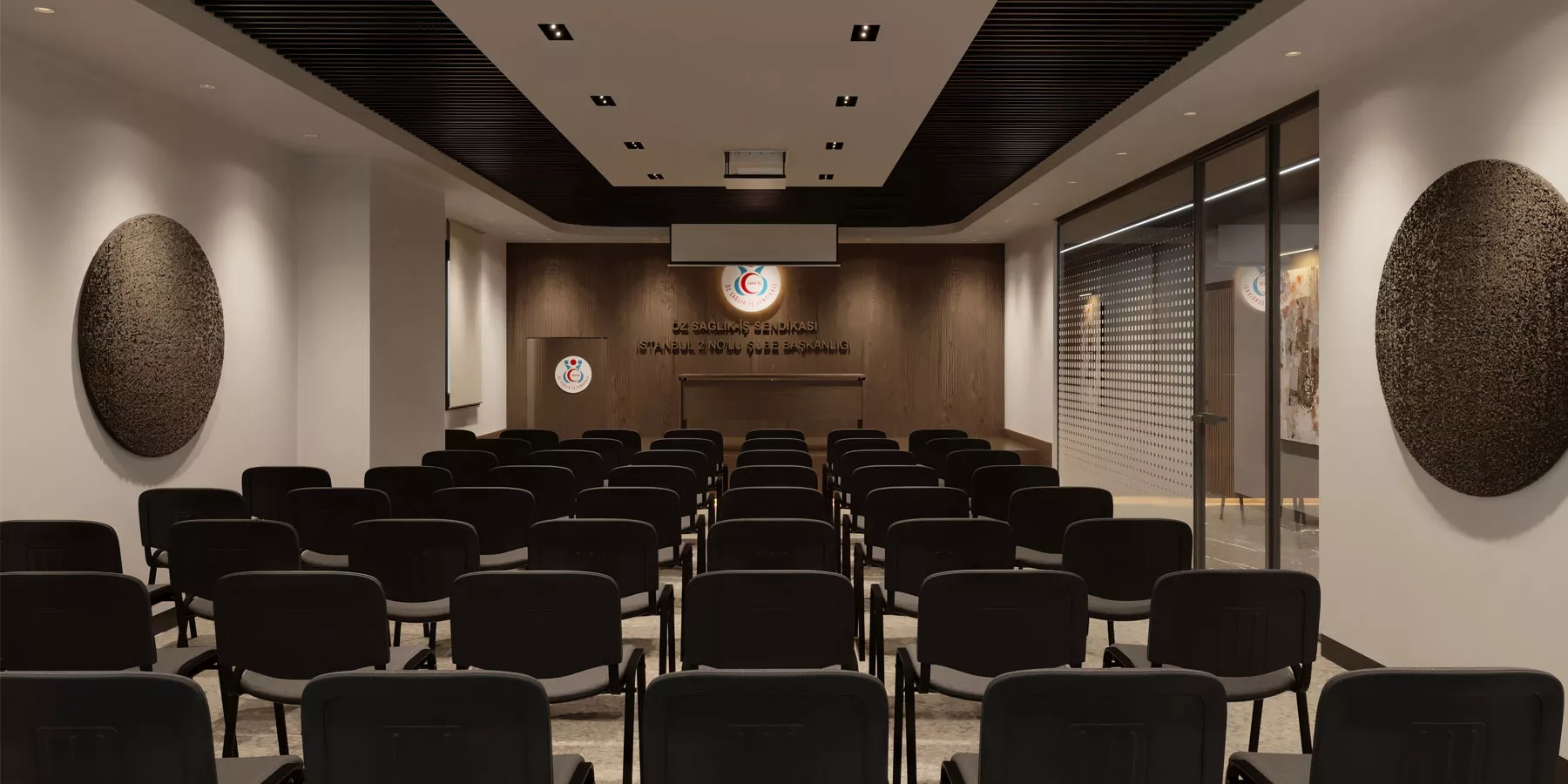 Zeytinburnu Öz Sağlık İş Sendikası Ofis Tasarımı Projesi, kurumsal yapıyı destekleyen güçlü bir ofis atmosferi oluşturmak amacıyla planlandı. Çalışma alanları, toplantı bölümleri ve ortak kullanım alanları dengeli bir şekilde kurgulanarak verimli bir ofis düzeni oluşturuldu.