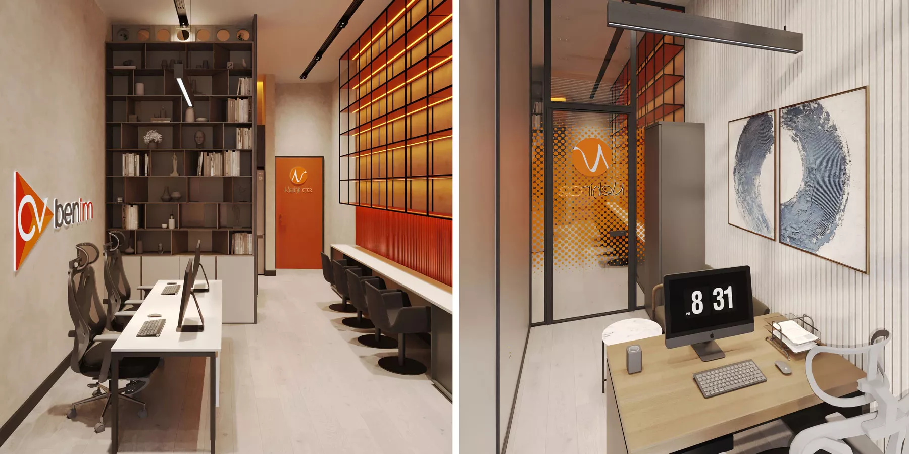 Premier Kampüs içerisinde tasarlanan CV Benim Ofis Projesi, genç ve dinamik bir çalışma ortamı oluşturma amacıyla geliştirildi. Ofis tasarımında açık mekân kurgusu ve modern mimari detaylar ön plana çıkarıldı.